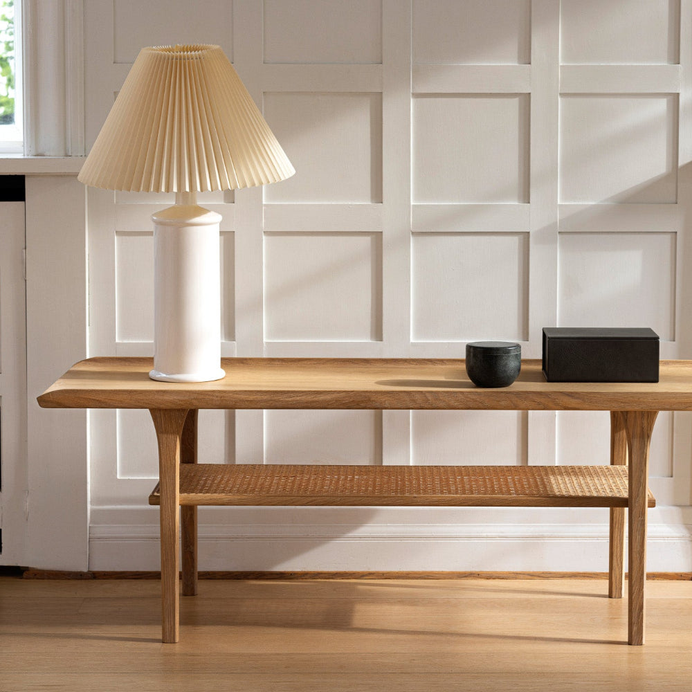 The No. 25 coffee table was designed in the 1960s by Jørgen Aakjær Jørgensen. No. 25 features a beautiful magazine shelf in French cane weaving, which with its characteristic look, adds plenty of charm and a contemporary expression to the home. No. 25 is a beautiful example of how French cane weaving perfectly complements today's organic interior design trend - without compromising on sleek design. The French weave provides a beautiful contrast, giving the furniture a floating yet solid expression.