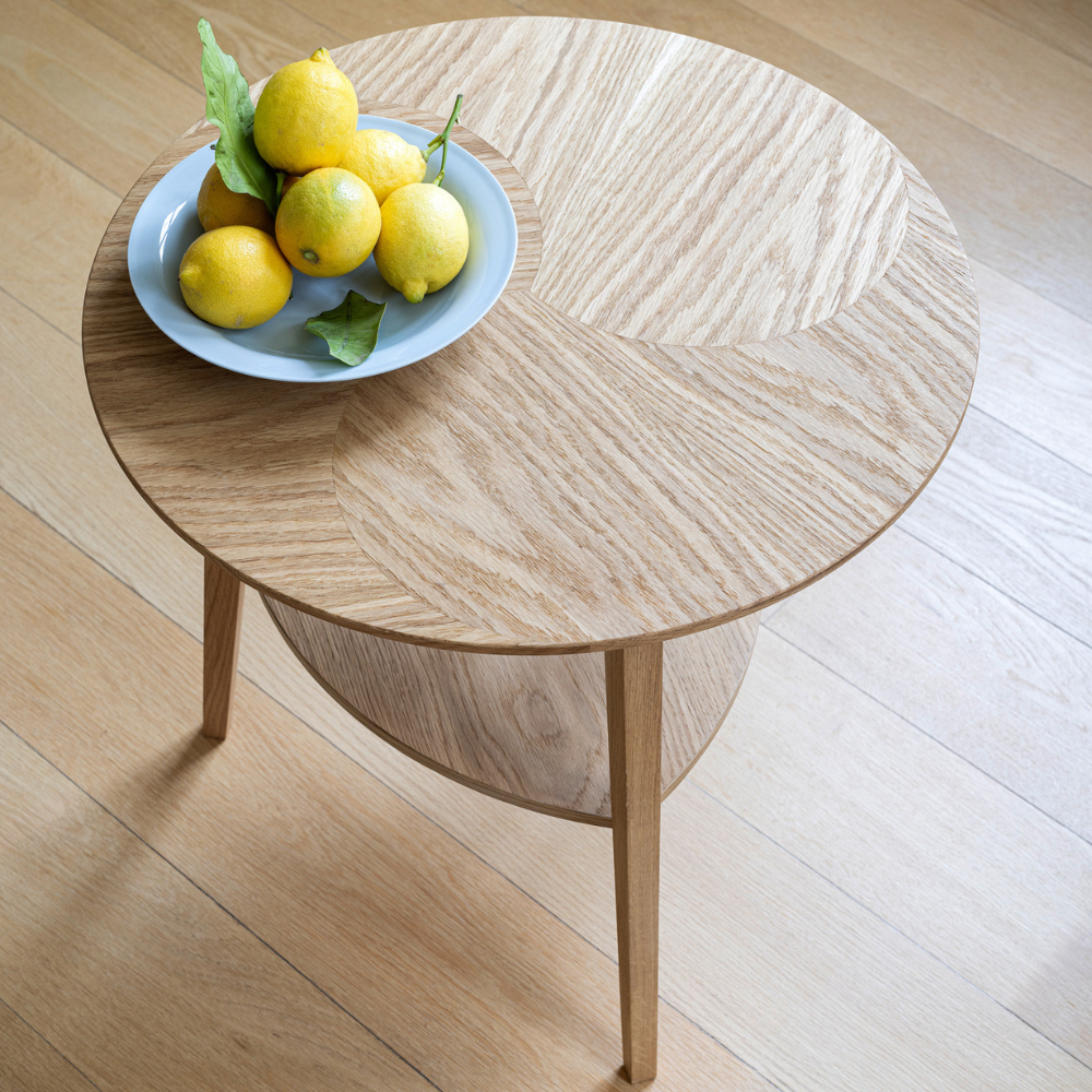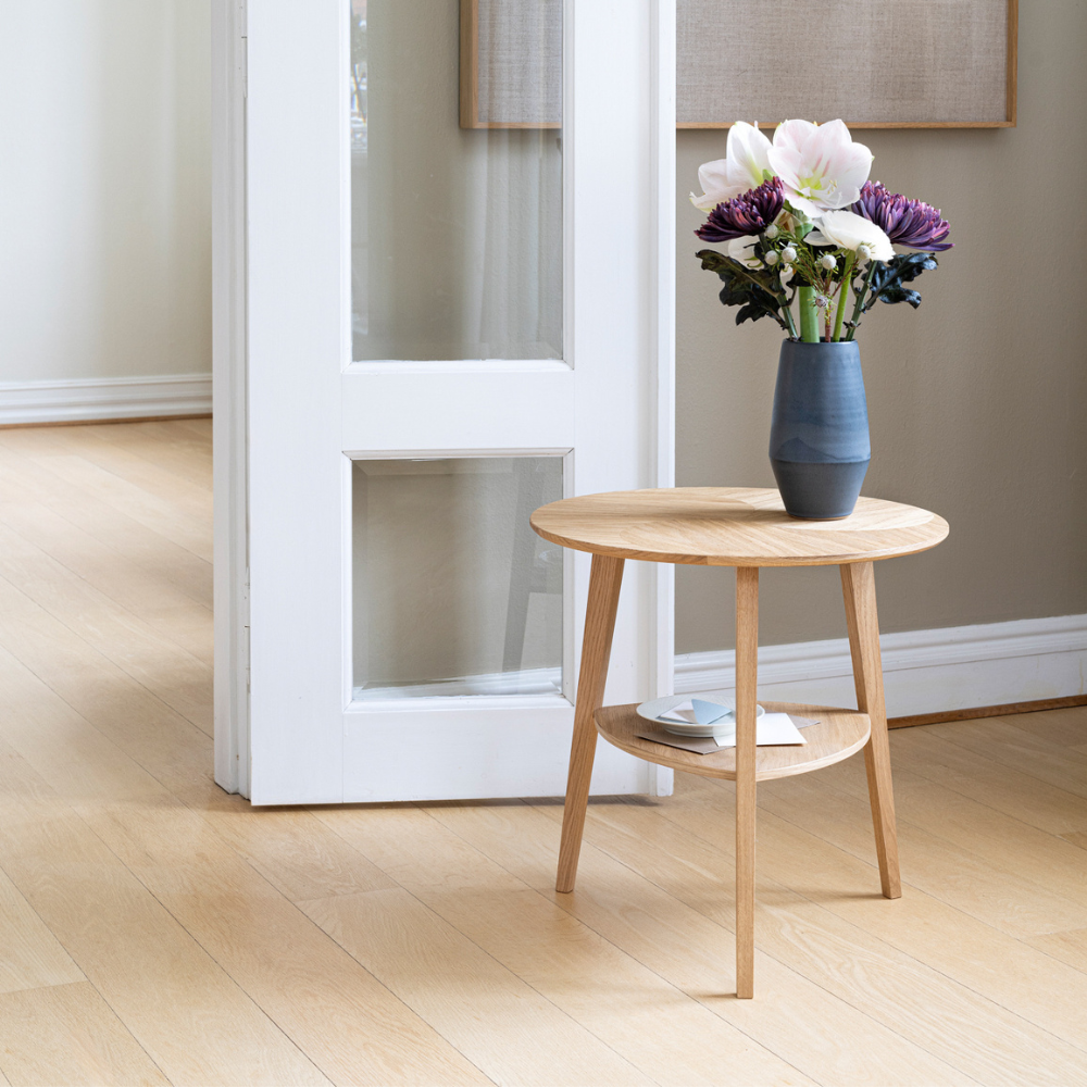 Drops Table tilbydes i tre varianter: hvidolieret eg, røgbejdset eg og naturolie, så du kan vælge den, der passer bedst til din personlige stil.